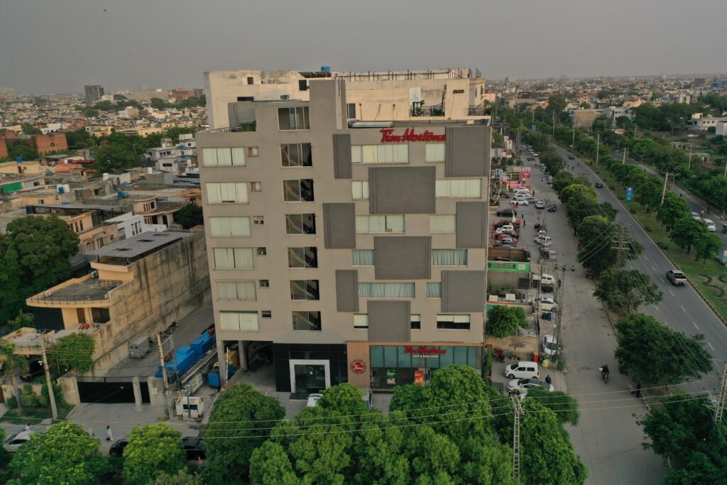 This property at 246 D2 Johar Town Lahore consists of a total of Ground + 6 floors, with a covered area of 1 Kanal. It features 26 well-designed apartments, including 7 single-bedroom apartments and 19 double-bedroom apartments. The single-bedroom apartments offer a gross area of 525.9 Sqft, while the double-bedroom apartments range in size from 767.6 Sqft to 1008 Sqft, with some offering 915.3 Sqft. Each apartment comes with an attached washroom, an open kitchen, and dedicated parking.