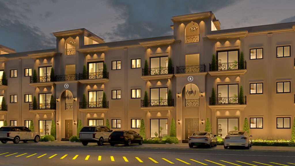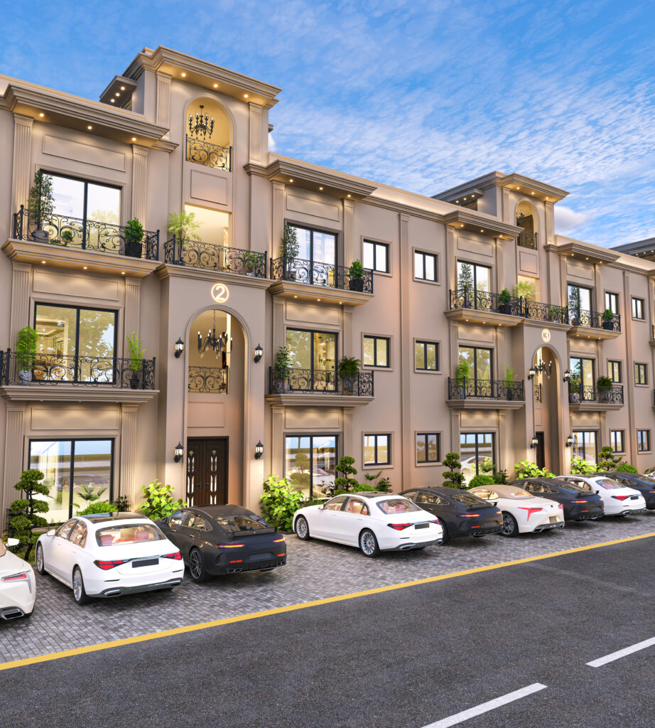 This premium townhouse development, located at Pine Avenue Road, Executive Block Phase 2, Etihad Town, offers a luxurious living experience with ground, 1st, and 2nd-floor configurations. Each townhouse features two bedrooms with attached washrooms, a spacious living area, a dining area, and an open kitchen. The property is set in a gated community with 24/7 security, ensuring safety and peace of mind. Residents can enjoy lush green parks, a beautifully landscaped garden, and access to a modern mosque and religious center.